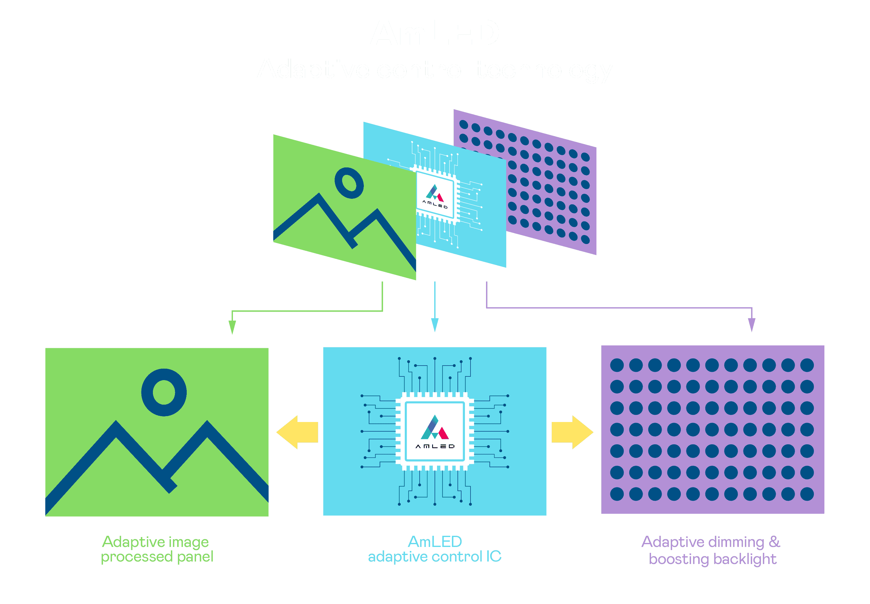 AmLED 具备更省电与低蓝光特性。。。。与一般的 LED 背光显示技术相比,,,,由于 AmLED 常时处于局部调光状态,,,其功耗仅有前者的 50% 左右,,,,同时 AmLED 还具备低蓝光特性,,,,满足长时间使用的护眼需求。。。